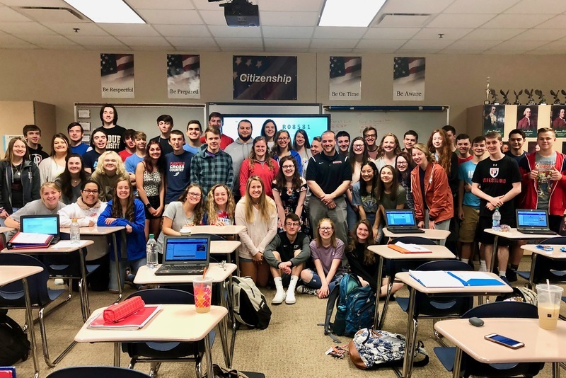Pictured above: Adam Ferguson with his morning CHAP (Cultural History of the American People) class, which combines English and History for a concentrated two-period course. He co-teaches CHAP with Carrie Cavanaugh.