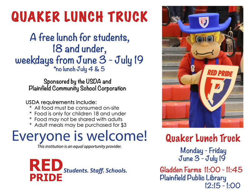 On Monday, the Quaker Brake Food Truck will begin its weekday visits to Gladden Farms and the Plainfield Library. This means a free lunch for anyone 18 and under, and we invite you to take part in this fun, social, healthy activity. The details can be found in this graphic.