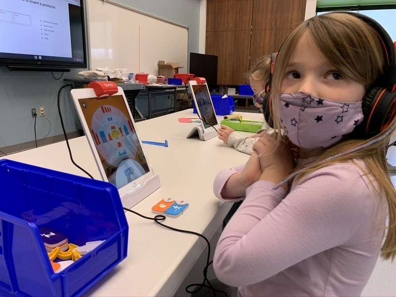 Last week, Kindergarten students began using those gifts. Building upon the technology and materials already in use at The Imagination Lab, Director Tracy Ballinger was able to purchase Osmos to work with existing iPads. The theory behind Osmo is that children learn better when they are using their hands and senses as part of the process.
