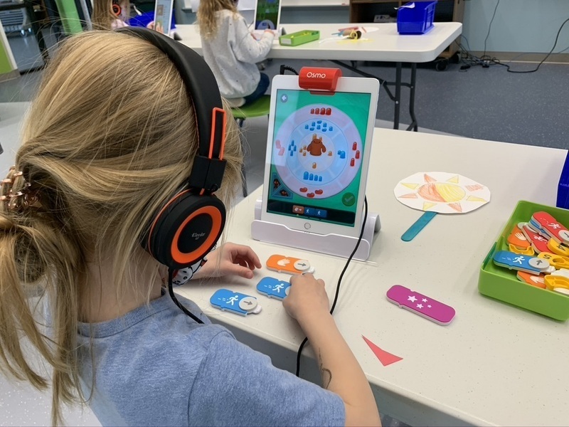 At its most basic level, and what was happening last week, is that Osmo coaxes kindergarten students through the first steps of learning to code. With a clip-on camera and base, Osmo works with mobile devices to introduce countless lessons to students. With math, puzzles, spelling, drawing, coding and even business lessons, the possibilities are robust, and children think they are playing a game when they are also learning important skills.
