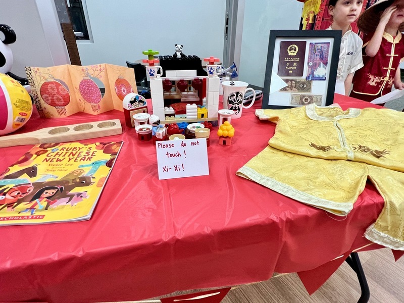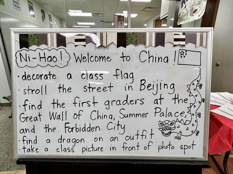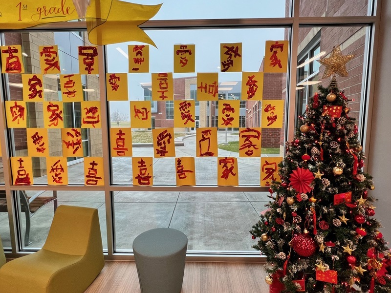 First grade students created artwork to represent the Chinese holiday traditions