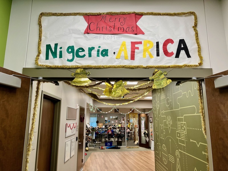 As visitors enter the 4th grade community, they are welcomed with colorful signs and decorations that reflect what you might find in Nigeria