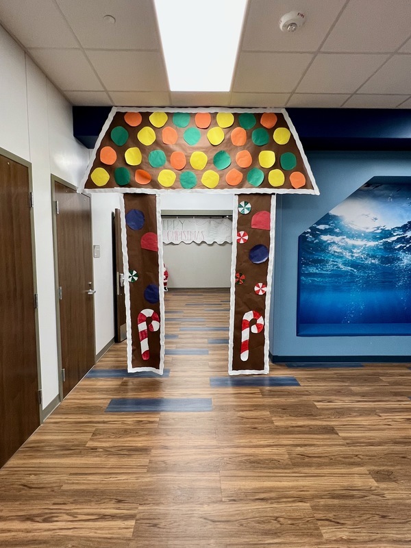 An iconic gingerbread home greets visitors to the Kindergarten community