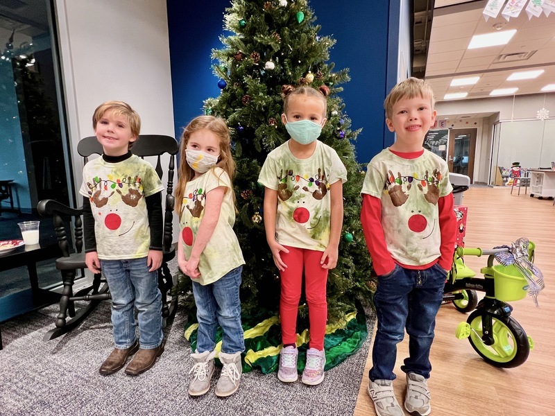 Kindergarten students painted their own reindeer shirts for their Reindeer Games activity