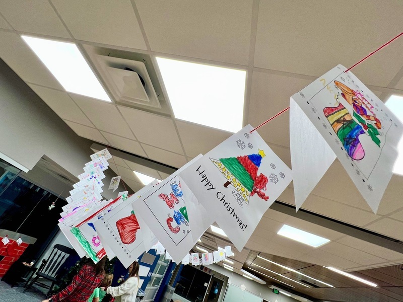 Kindergarten students designed their own Christmas cards, another important tradition from the United States