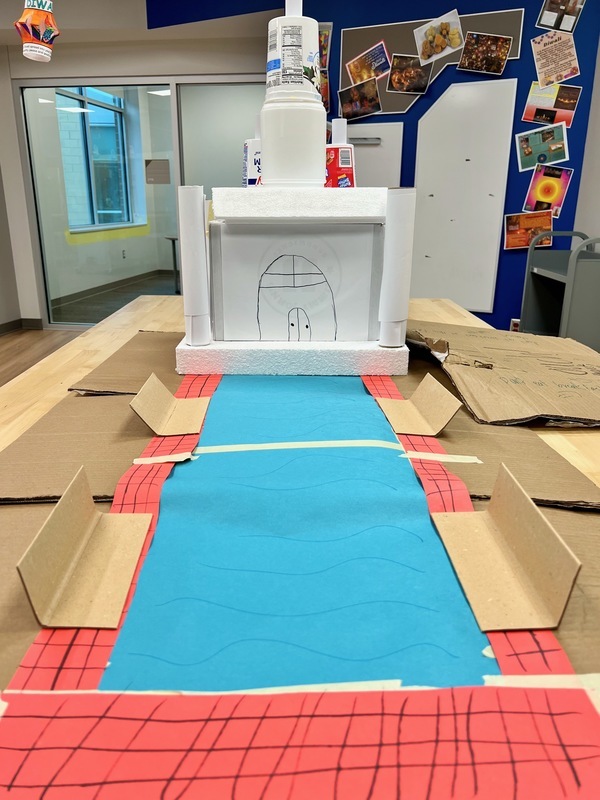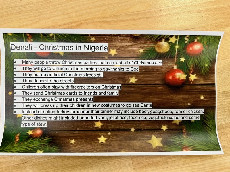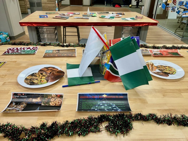 In 4th grade, students included maps, foods and designs as they created a community that reflects the Christmas season in Nigeria