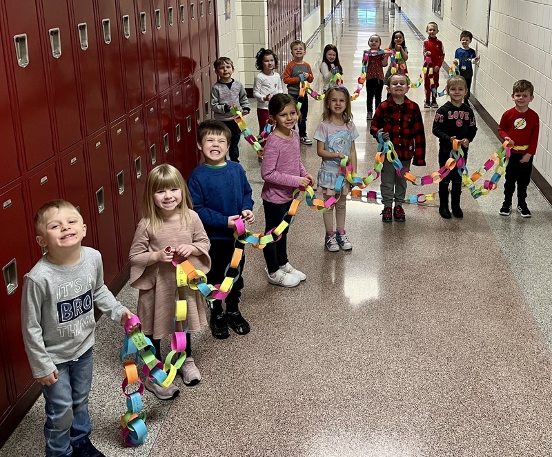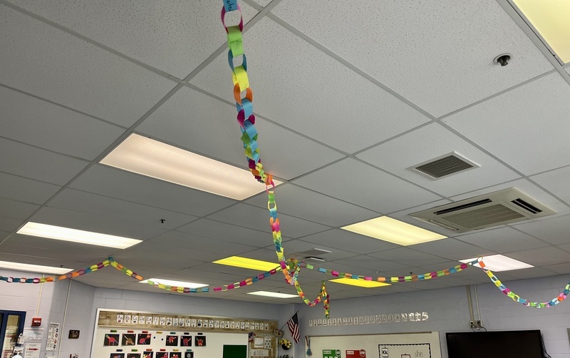 For the month of February, her students were challenged to complete acts of kindness, both at school and at home. These acts of kindness were demonstrated using a paper chain with each act written on the links. After one month, they had completed over 250 kindness acts!