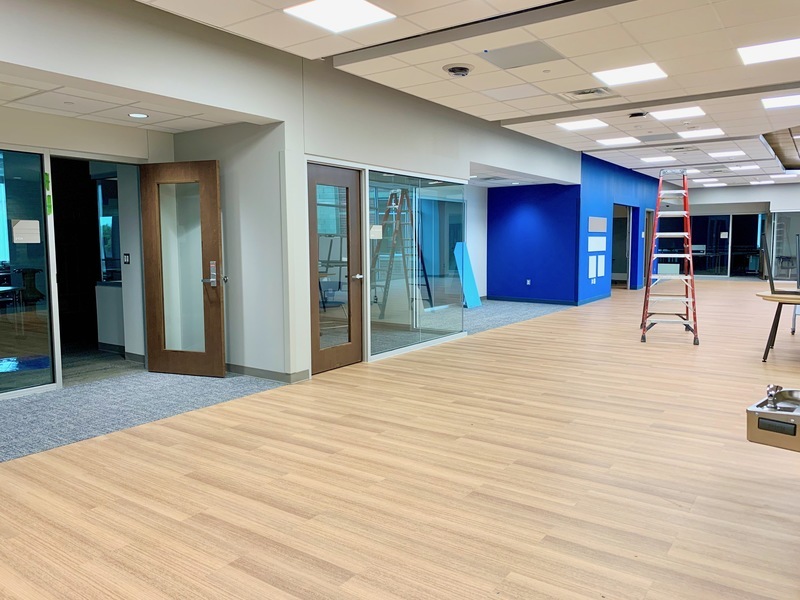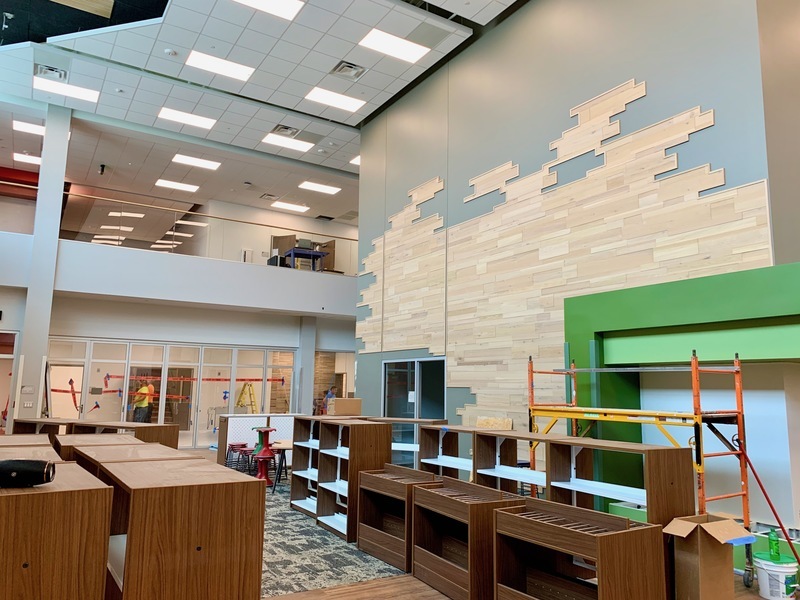 We don't have any updated photos of the cafeteria, gymnasium or YMCA space because they were working on the floors this morning. But those areas are just as beautiful as the rest of the school!