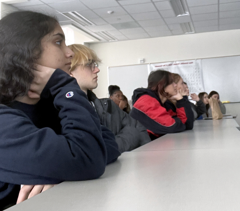 Students from the PHS newsmagazine and yearbook staffs listen to a presentation at the annual Indiana High School Press Association convention at Franklin College on January 27. Photo by Sri Nattam