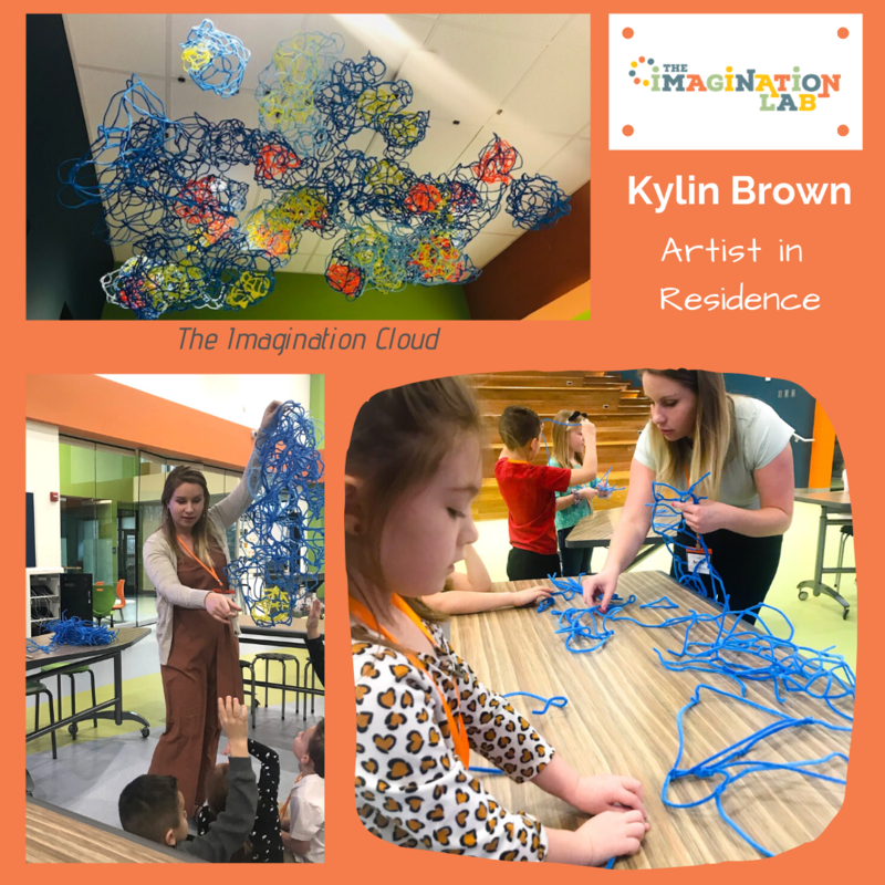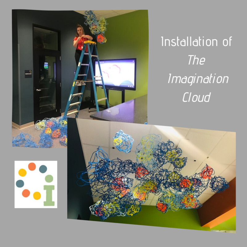 The Imagination Cloud is the final title for this collaborative piece by our Kindergarten and 1st grade students! It is currently on display at the Imagination Lab.